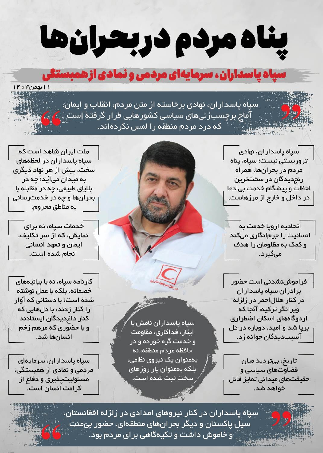 غلامرضا علیمحمدی، مدیرعامل و حجتالاسلام والمسلمین حاج فرزاد منصوری، مسئول دفتر نمایندگی ولیفقیه در جمعیت هلالاحمر استان لرستان، با صدور پیامی، فرارسیدن میلاد حضرت بقیةالله الاعظم(عج) و عید نیمه شعبان را تبریک گفتند. در این پیام بر الگوگیری از سیره آن حضرت در مسیر خدمترسانی بیچشمداشت به همنوع تأکید شده است.